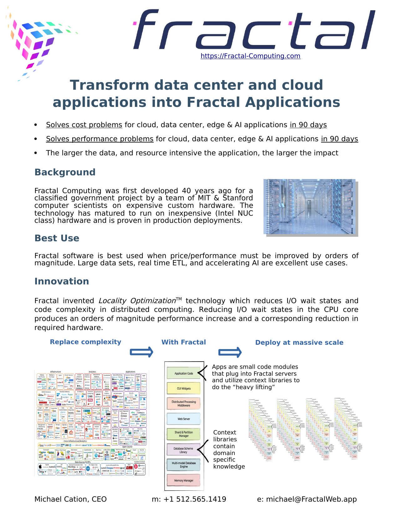 - Fractal makes efficient use of hardware resources so that data center and cloud provider costs are dramatically reduced.