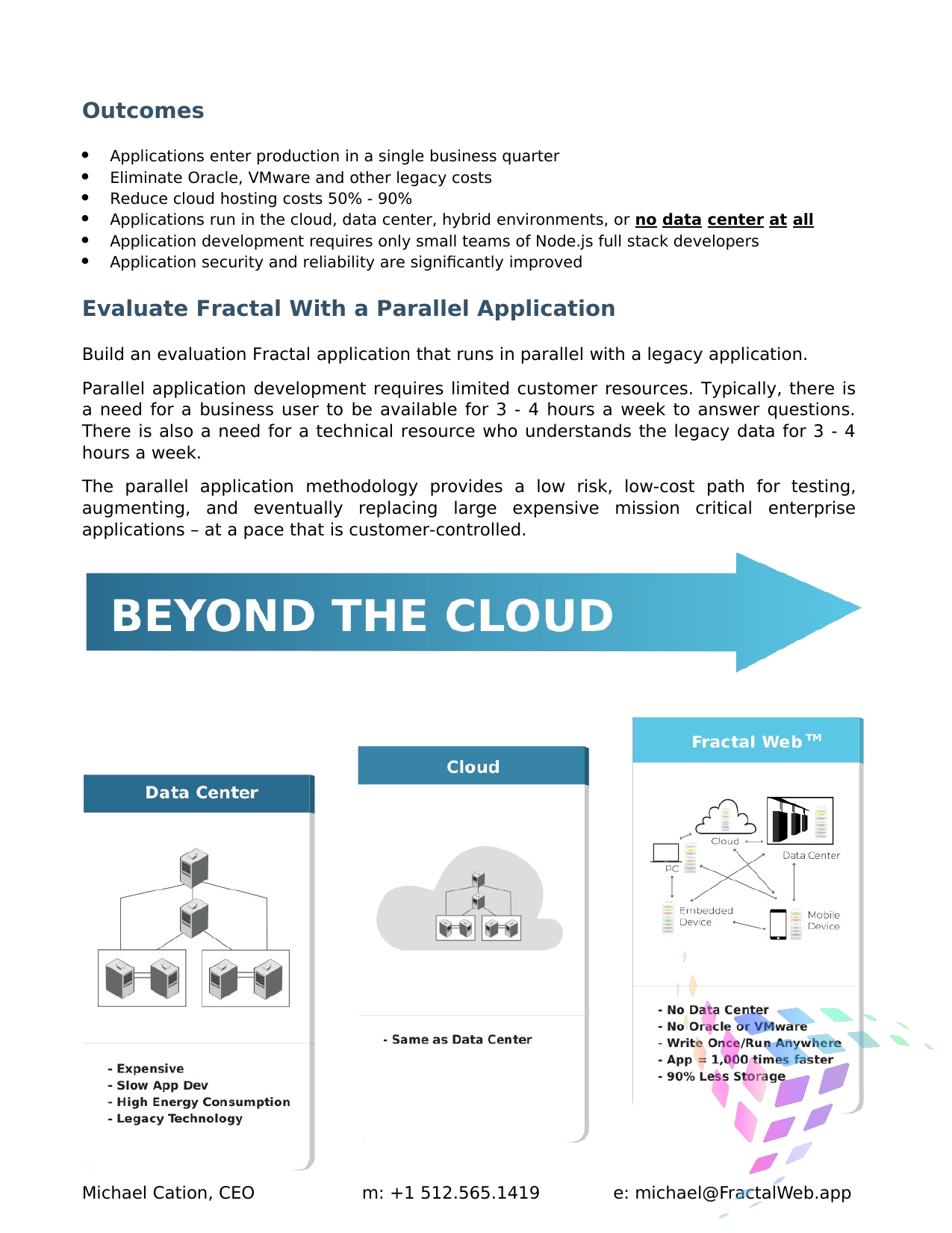 - Fractal apps can be developed and deployed in a single business quarter with business unit or department level Javascript programmer resources.